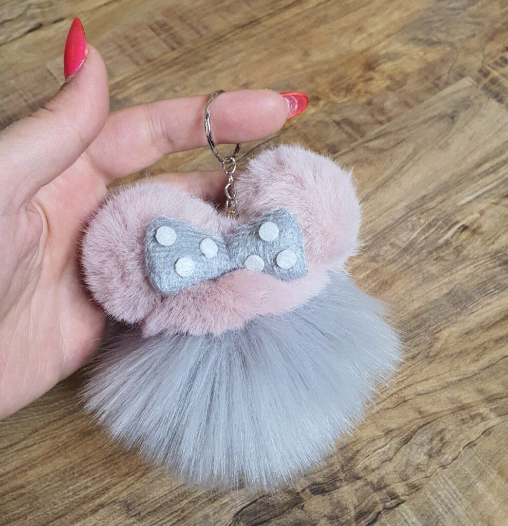 جاکلیدی گوش دار و پاپیون دار نرمالو طوسی تپل و صورتی یواش