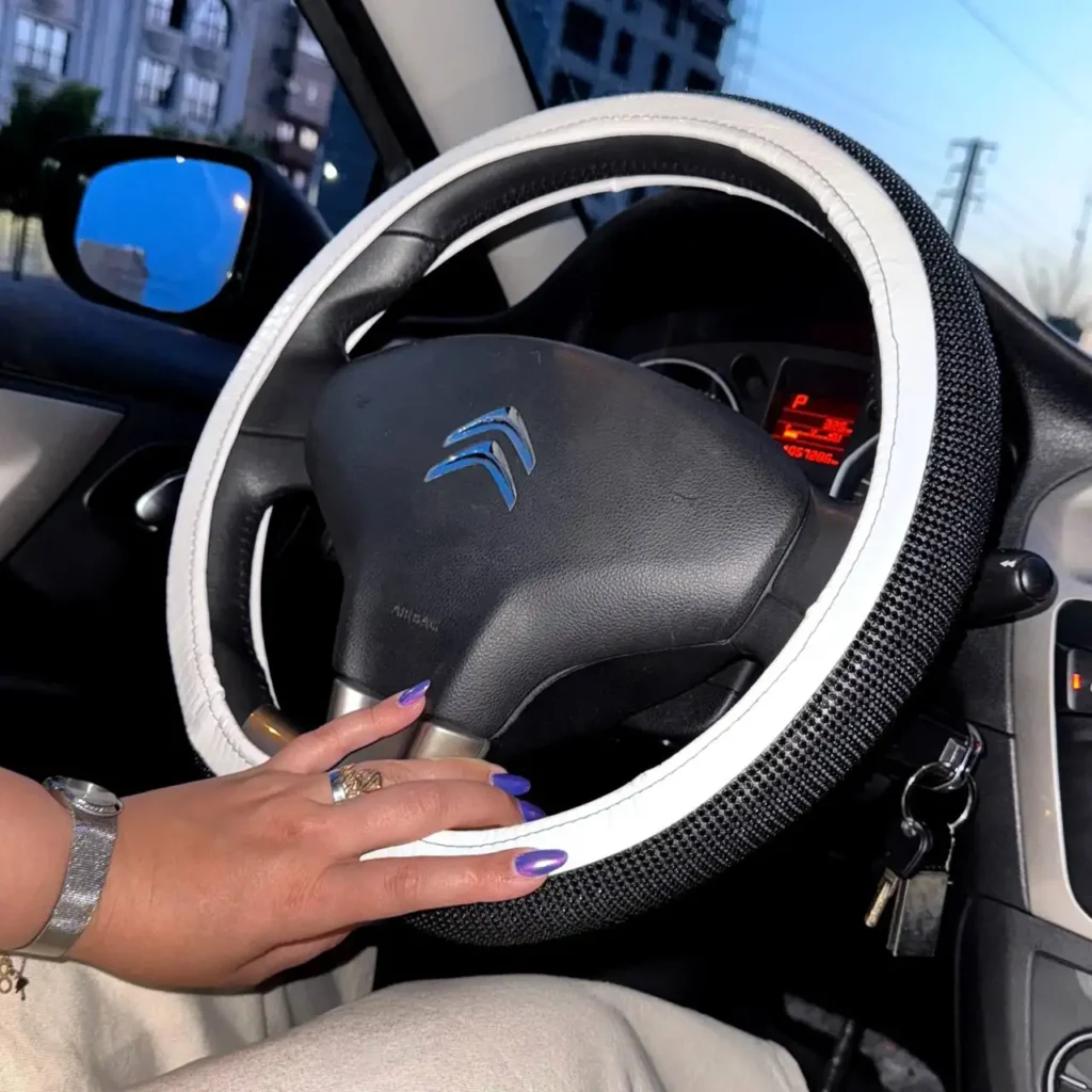 دورفرمان چرم سفید و نگین مشکی