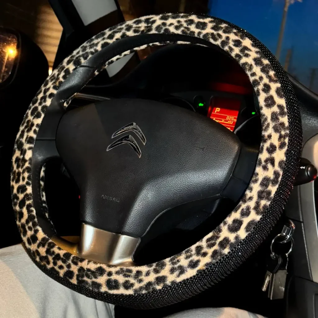 دورفرمان پلنگی چرم مخملی و نگین مشکی
