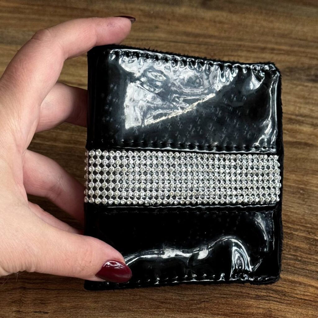 کاور مدارک چرم مشکی و نگین نقره ای