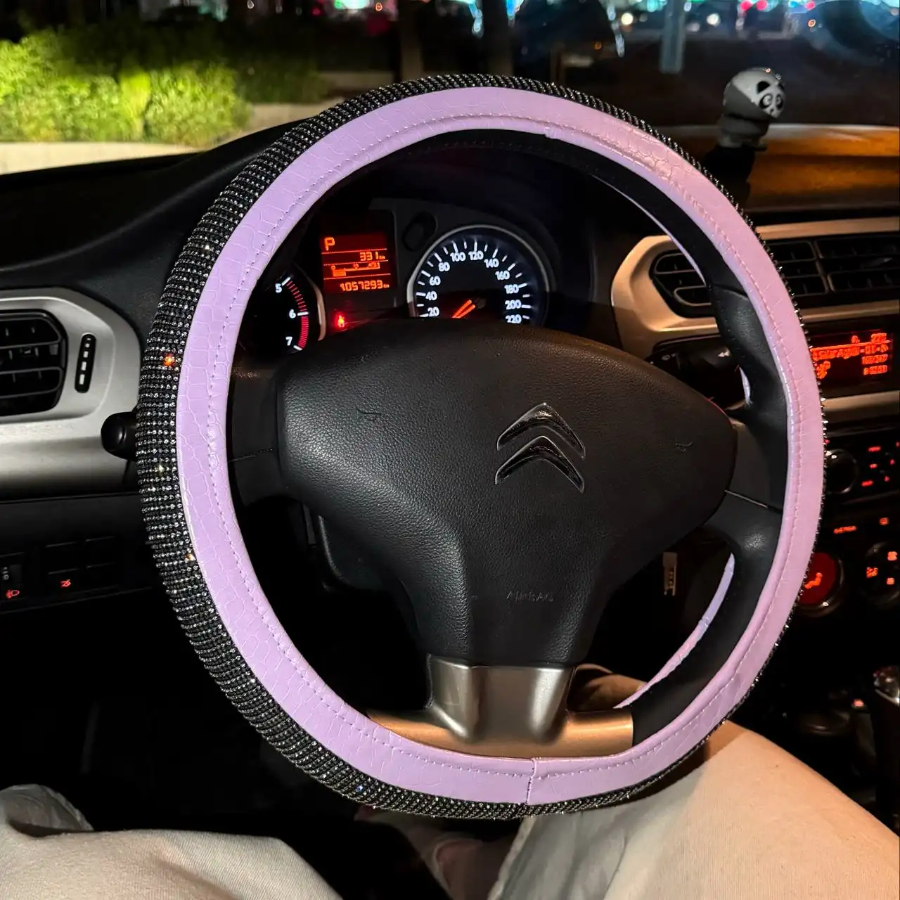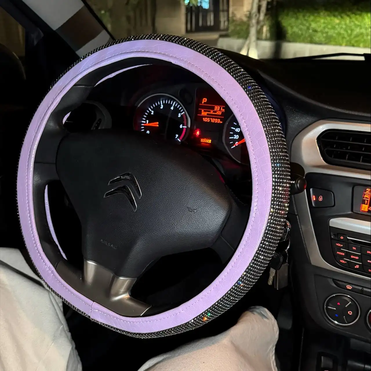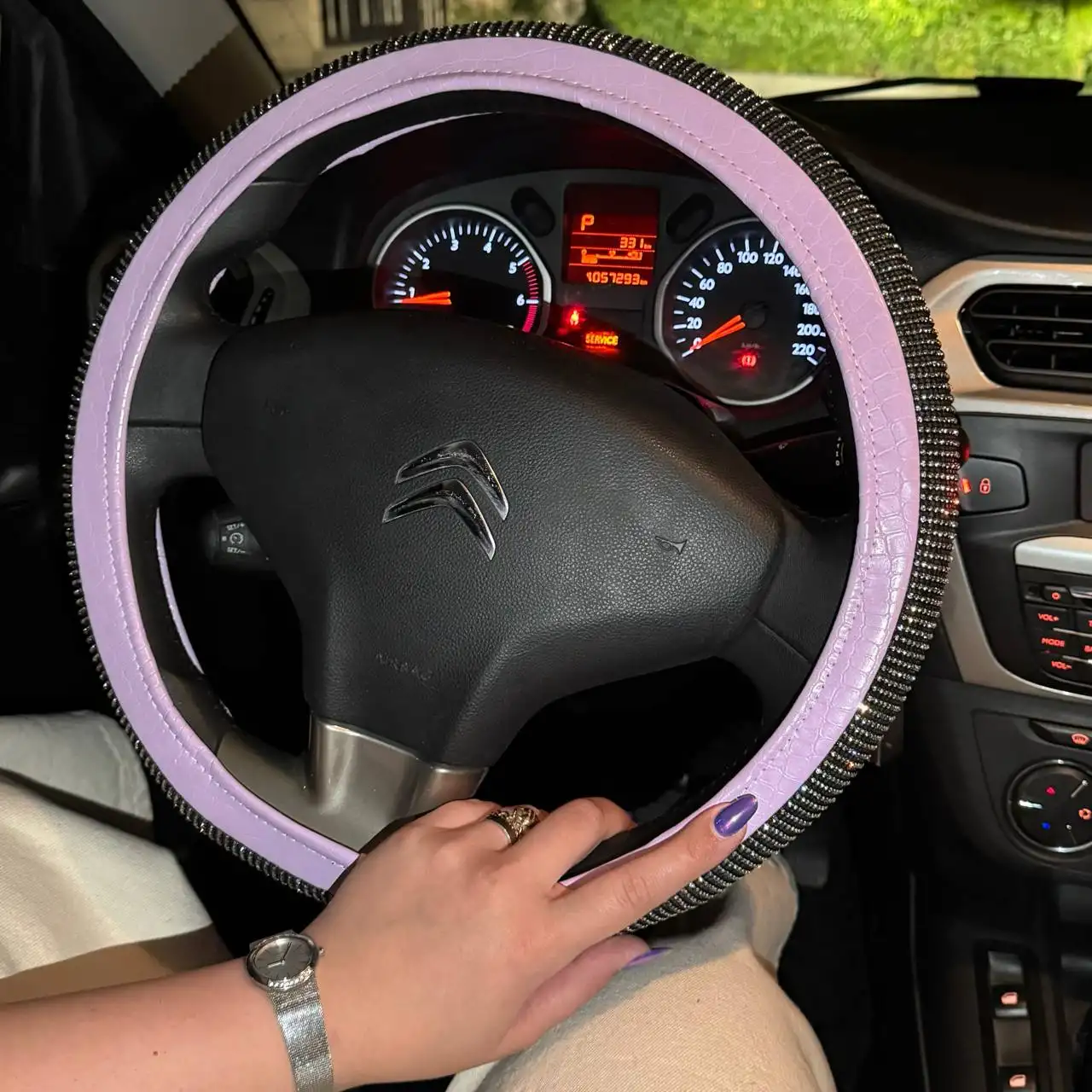 Lilac leather and Gray Swarovski diamonds Steering Wheel Cover