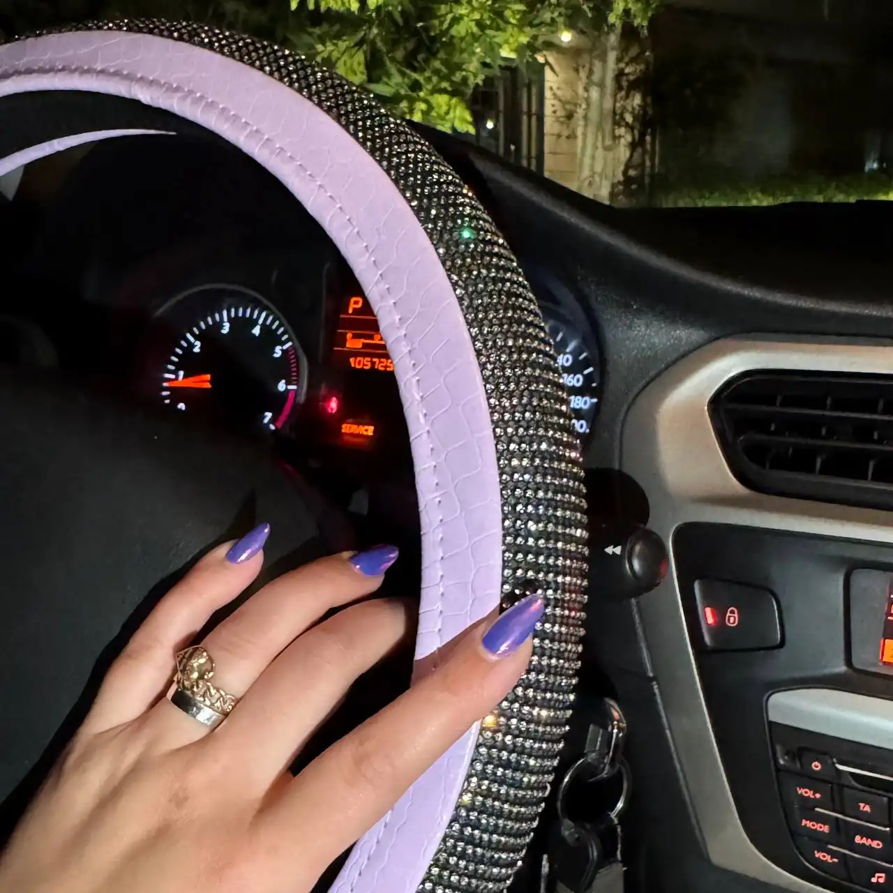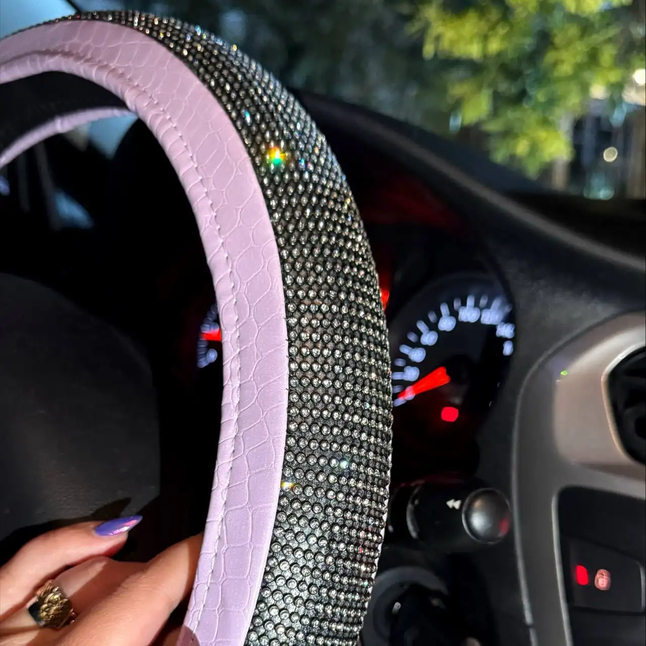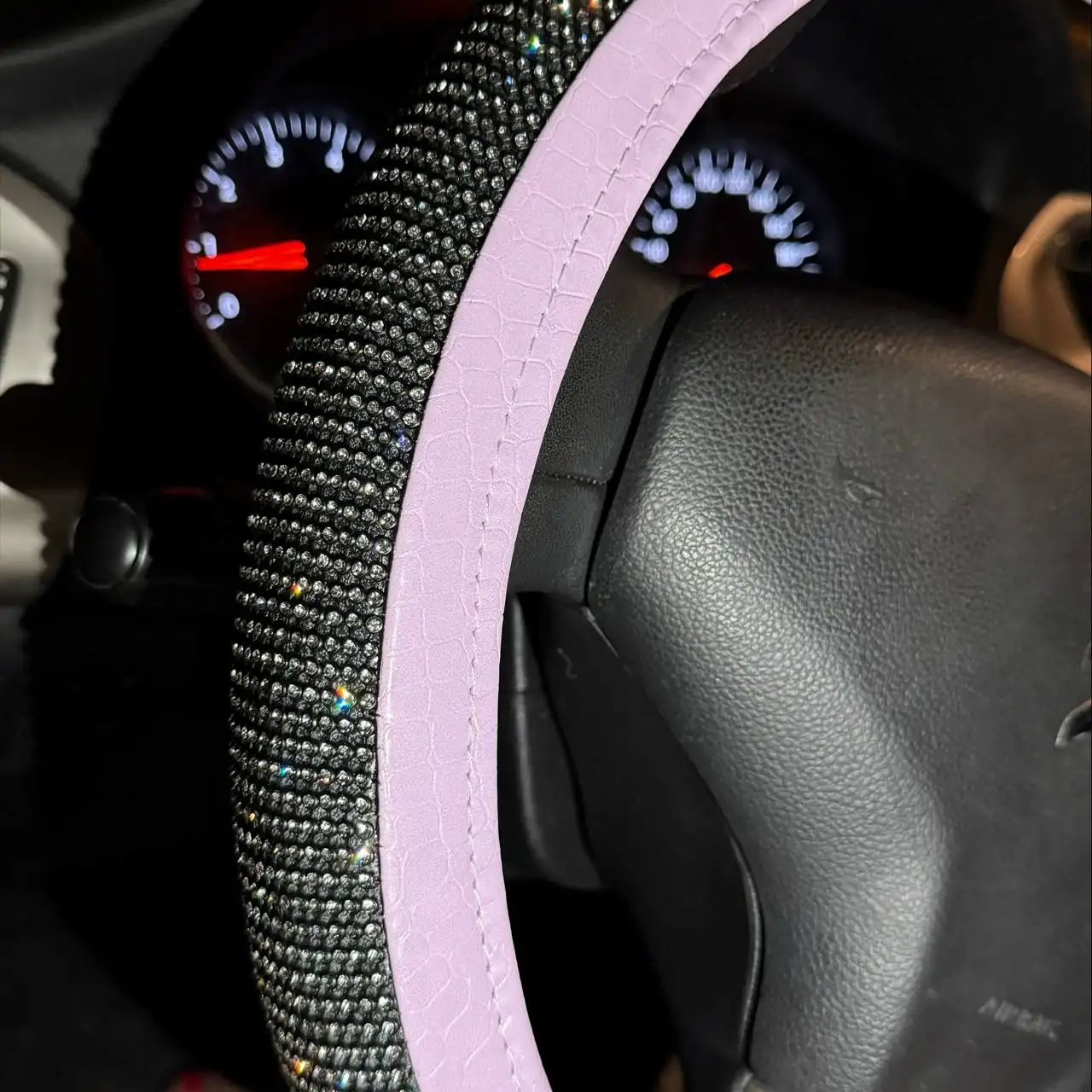 Lilac leather and Gray Swarovski diamonds Steering Wheel Cover
